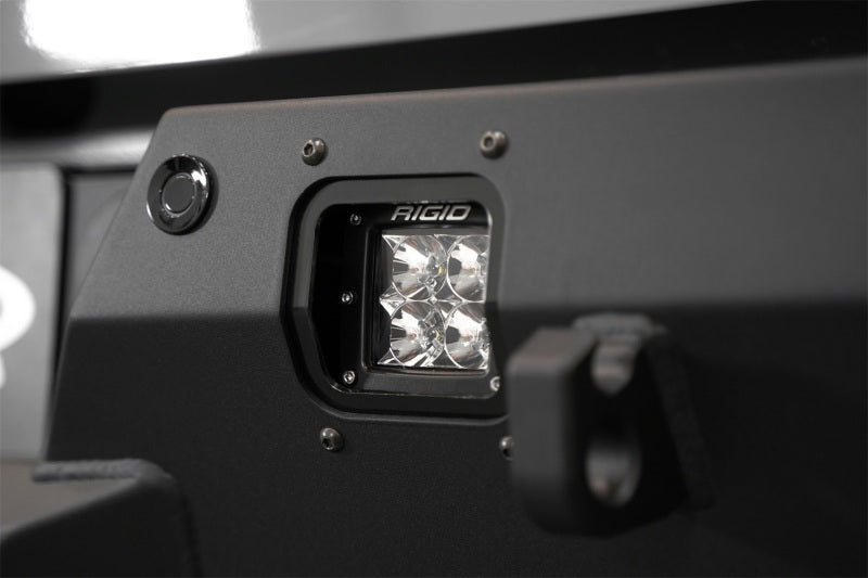 Our Phantom Rear Bumper is designed to prevent damage from rocks, shrubs, debris, and other off-road obstacles. The integrated pair of cube light mounts allow for improved lighting in dark or dusty conditions. A pair of 1-inch D-ring mounts provide vehicle recovery capabilities. The bumpers seamless fitment and sturdy design offers an aggressive styling that compliments your rig's exterior. The Phantom Rear Bumper is made from durable American steel, and the dual-stage hammer black powder coat and satin black aluminum accent panels offer a sleek finish. The bumper is designed to closely follow the contours of your truck, for a seamless fitment that also retains the OEM parking sensors and trailer plug & wiring. This ADD Offroad rear bumper is proudly made in the USA.