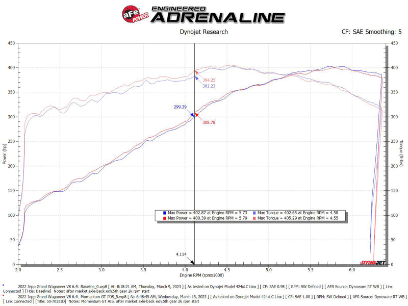 Designed to increase horsepower, torque, and throttle response, this cold air intake system provides your engine with a steady stream of cooler, denser air. The result? More power and better performance, whether you're hitting the trails or cruising down the highway. With its easy bolt-on installation, this Momentum GT cold air intake system is a must-have upgrade for any Jeep Grand Wagoneer owner looking to maximize their vehicle's potential.Large Three Layer Performance Air Filter:Momentum’s unique filter-to-housing interface was built to feature the largest air filter possible. This 9” tall 360-degree radial flow air filter features our oil-free Pro DRY S media with three layers of synthetic media for maximum convenience. Its progressive layering provides great filtration efficiency and dust holding capacity, while not requiring the use of oils. This media is best suited for street use. Its inverted top makes for more filter surface area, resulting in longer service intervals. This media is best suited for street and light off-road use.Unique One-Piece Housing:The smooth one-piece sealed housing, constructed of heat-resistant cross-linked polyethylene (XLPE), features our patent-pending filter-to-housing interface. Its innovative design minimizes the total number of parts, making for an easy installation. A large, clear sight window allows for hassle-free filter inspection, without having to disassemble your system.Hassle-Free Installation:This intake is designed to use factory mounting locations, minimizing the use of unnecessary hardware, ensuring a perfect fit every time. Its revolutionary design, featuring our patent pending filter-to-housing interface uses half the number of parts of a traditional cold air intake system.Premium Components:Stainless-steel worm clamps are included for strength, and a premium silicone coupling allows for ample flexibility.