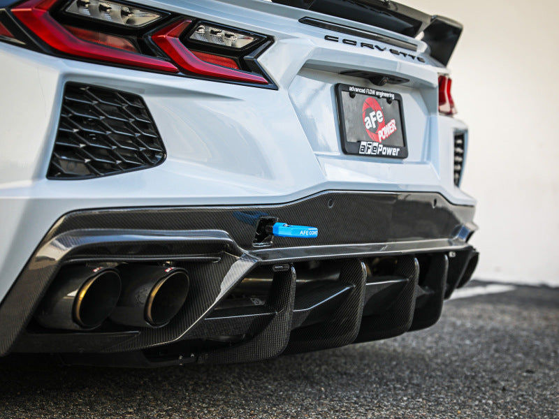 Add aggressive styling and useful functionality to your C8 Corvette with the aFe CONTROL Rear tow hook. Its sleek design not only looks great but is strong enough to safely winch your car onto a tow truck or get towed trackside if the need arises. Our C8 specific CNC machined stem and loop is made of 4130 steel. The stem is black zinc coated for corrosion resistance. The loop is powder coated Blue (Red, Gray, and Black are available). This is not a universal tow hook. The stem was specifically designed for the C8 Corvette and the length was carefully determined to fit the rear bumper. A proper front tow hook to match is also available. (p/n 450-401014-L). Both the stem and bolt threads are pre-coated with Vibra-tite threadlocker. This keeps your tow hook from loosening due to vibration. The special threadlocker is designed to remain flexible, removable, and reusable.