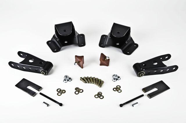 Belltech Shackle and Hanger Kits are designed to lower the rear of your leaf spring equipped Sport Truck or SUV by up to 5" (Note: Application dependent). Belltech's redesigned Shackle and Hangers reposition the front and/or rear leaf spring mounting points (spring eyes) so you can simply and effectively lower your leaf spring equipped Sport Truck or SUV without modifying or changing the factory leaf spring. This allows you to retain OEM ride quality and more importantly factory load capacity.