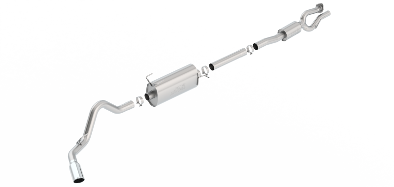 This dual 2.75" into single 3" diameter Cat-Back(tm) system was developed for use on F-250 and F-350 Super Duty trucks with performance, sound, style and durability in mind. The computer numerical control (CNC) formed mandrel bent pipes ensure maximum flow for horsepower and torque along with an accurate fit. The muffler is specifically designed to give the 6.2L engine the classic S-Type sound without any drone inside the vehicle. The system features a 5" round bright chrome on T-304 stainless steel tip. A system with a black chrome on T-304 stainless steel tip is also available. This system can be adapted to the different wheel bases offered by Ford. 140798 includes the front extension pipe for the Crew Cab with Short Bed (6' 9") 160" Wheelbase configuration. By removing the front extension pipe it will fit the Regular Cab with Standard Bed (8') 142" Wheelbase. Add PN 60691 for Extended (Super Cab) with Short Bed (6' 9") 148" Wheelbase, PN 60692 for Extended (Super Cab) with Standard Bed (8') 164" Wheelbase, or PN 60693 for Crew Cab with Standard Bed (8') 176" Wheelbase vehicles. NONE of these systems or configurations will fit trucks with dual rear wheels. Borla(r) Cat-Back(tm) & Axle-Back exhaust systems feature patented straight-through and multi-core technology to unleash hidden horsepower. Increased exhaust velocity adds power, driving excitement, fuel economy, and the distinctive Borla(r) Sound of Power respected by motoring enthusiasts everywhere. Only T-304 stainless steel is used in the construction of Borla(r) systems, that allows us to give you a Million Mile warranty.