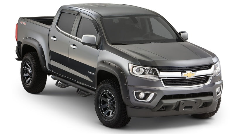 With their recessed stainless steel bolts and massive presence, Pocket Style Fender Flares are a Bushwacker original and an off-road icon. They give you the hard-core look of bolt-on flares, with no body-side sheet metal drilling required. Pocket Style Fender Flares are custom-designed for your vehicle to complement oversized tires and high-clearance lift kits. You can mount them right out of the box with their tough, OEM-style matte black finish they're UV protected so they won't chalk. You can also paint them to match or accent the body color for a factory-custom look. Pocket Style Fender Flares are made from our thick, warp-resistant Dura-Flex 2000 material and tailor-made for added durability and flexibility on the trail. When you need maximum tire coverage with minimum time and effort, it's in the pocket. Pocket Style Fender Flares from Bushwacker.