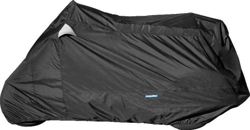 Heavy-duty, top of the line, all-weather cover from CoverMax® by BikeMaster® that is designed specifically for trikes. Waterproof seams, 300-denier polyester with PU coating. Ultra-soft 30g velour lining helps protect paint from scratches. Two top covered vents improve ventilation and help reduce condensation build up. Vent covers are reflective for added visibility and security. Convenient access panel without removal of cover. Windshield liner helps protect windscreen from scratching. Extra-wide tail slot accommodates multiple radio antennas. Tailor-fit elastic skirt and adjustable hook-and-loop center strap helps secure the cover and gives a custom style fit. Built-in grommets for use of security cable lock (cable lock not included). Available for metric or Harley-Davidson® trikes and/or Spyder roadster.