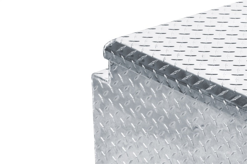 Dee Zee Tool Box - Red Label Chest. Constructed of heavy duty Brite-Tread aluminum. Crown style lid with a full pan double-V stiffener for superior rigidity. Extra wide design for maximum storage space. Other features: lockable stainless steel paddle handles, dampened gas shocks, closed cell foam gasket, and self-adjusting strikers.