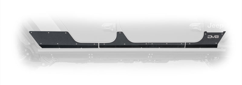 The DV8 Offroad SRGL-05 Rock Skins can be used with any Gladiator step or slider and contour around either factory or aftermarket fenders. They are designed to add protection to the exposed are of the body between the door and the bottom of the body which is one of the most susceptible areas on any Jeep for trail damage. The SRGL-05 come complete with stainless steel hardware and attach to the Jeep using nutserts. Key Features: Made with 3/16 inch steel, Powdercoated DV8 Textured Black, Protect a very vulnerable area of the Gladiator, Can be used to cover trail damage, Attach securely using nutserts.