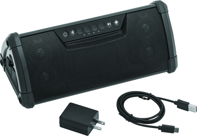 Kuryakyn® WanderBar™ Portable Soundbar by MTX® provides incredible sound in a rugged, go-anywhere package designed to match active lifestyles. Crystal clear sound and immersive mid- and low-range depth are provided thanks to an integrated DSP (Digital Signal Processor) that delivers peak performance at any volume and in any environment. The internal 35-Watt dynamic stereo amp powers two 2 in. x 3.2 in. neodymium woofers and four 1 in. teteron dome tweeters, while integrated passive radiators produce thumping mids and basslines not typically achieved in a compact soundbar.