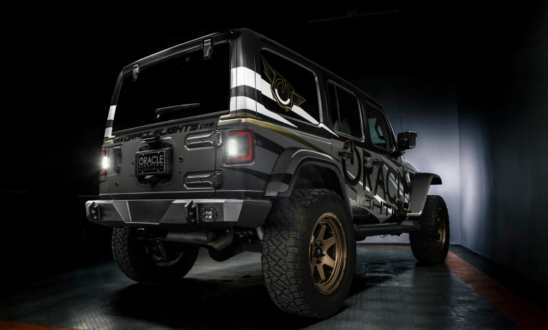 Designed to fit flush with the rear end of the Jeep Wrangler, the new JL Flush Tail Lights from ORACLE Lighting offer new LED features and improved styling. This innovative design is a sleek tail light for Jeep Wrangler JL's that wraps tightly around the truck. Protruding out significantly less than the factory tail lights, this low-profile design helps avoid damage while trail riding. These Jeep Wrangler JL tail lights feature an attractive design and functional LED lighting features including high-powered reverse lights and unique signature perimeter lighting. In addition to standard features, the plug-and-play design features an enhanced reverse function and caters to the Jeep’s optional cross-traffic sensor. The reverse light features 12 high-powered LEDs for optimal rear illumination. The cross-traffic sensor can be swapped directly over from the factory assembly and easily installs into the ORACLE Lighting tail lights for Jeep Wrangler JL. These flush-mount tail lights are compatible with both the base and LED packages. Gain sleek styling that compliments the original body lines and tons of innovative features. With the superior quality and durability that ORACLE Lighting is known for, these tail lights are the perfect upgrade for your Jeep Wrangler JL!
