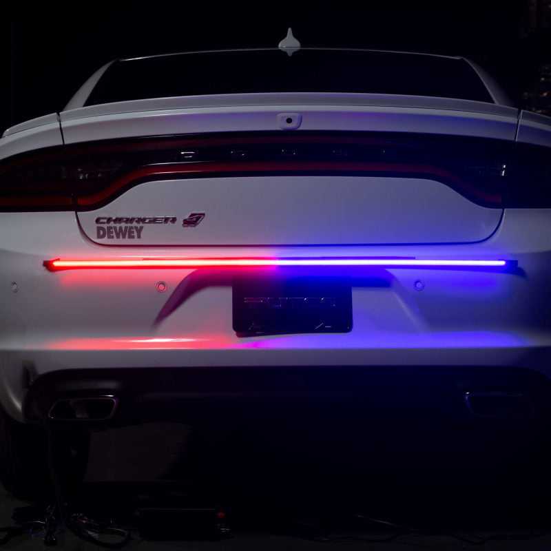 Give you and your fellow first responders extra safety and protection with the universal Putco E-Blade 48" Anti-Collision LED light bar. Reduce rear-end collisions by alerting incoming traffic that this emergency vehicle is braking or turning even when the emergency lights are activated. This light bar works as an extension of the factory rear tail lights with brake and turn signals. There are three color styles to choose from blue strobing, red strobing, and blue and red strobing. All emergency lights will instantly turn off when you apply brakes or turn signals and once the signals are deactivated the emergency lights will start back up. This E-blade is designed to go under the tailgate with no-drill mounting clips. If you want to add this to a car or SUV you will need the Universal rear vehicle mount.Each E-blade kit comes with a 48" LED light bar that has more than 1,800 LEDs that push out a massive 1400 Lumens, an on/off switch, and no-drill clips. The live wire is used to choose one of two patterns and what speed you would like that pattern to go. Because of the performance, quality, and compact design... these are the perfect addition to your first responder PPV! Manufactured exclusively for Government, Police, Sheriff, & Public Safety Vehicles only! Putco will only ship to an official City, Municipality, County, State, or Federal Government Address. Call verification required for order processing. Thank you. After you place your order online, a member of our team may need to contact you to verify that this product will be used by an official government entity or public safety outfitter for its proper intended use, we reserve the right to cancel the order for this specific product at any time and you will be notified accordingly.