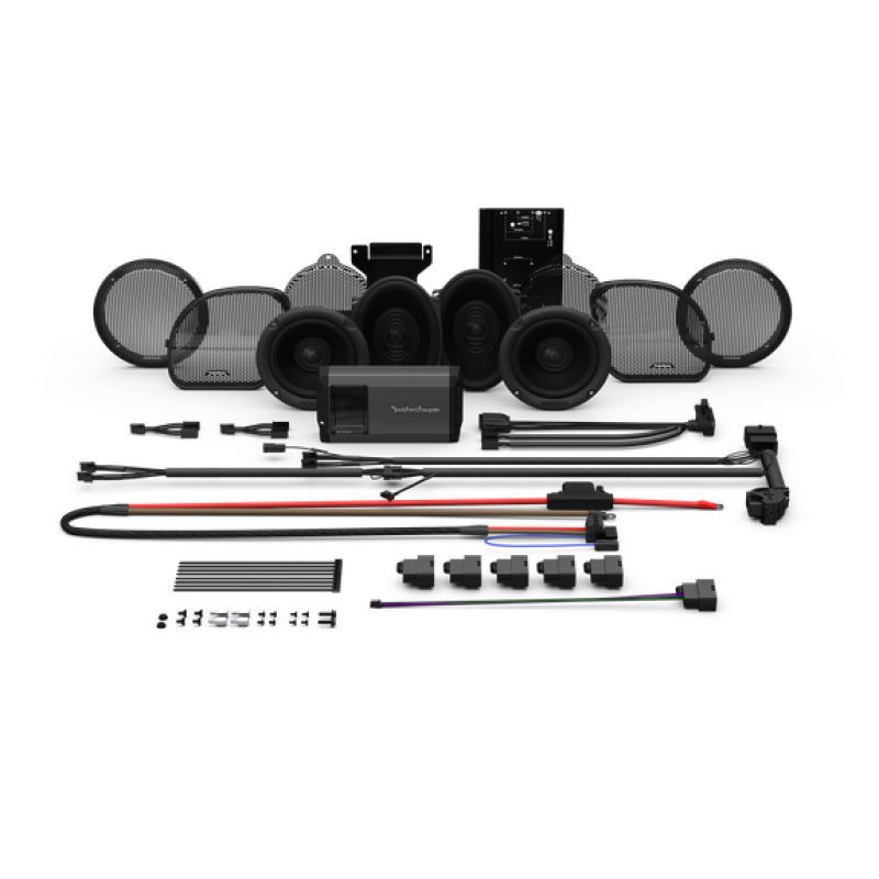The next step in motorcycle performance, the Rockford Fosgate® M5 Audio Kits are the loudest and clearest audio systems yet. Featuring simple plug-and-play installation and paired with freeway speed output create the best in class on bike audio experience.
