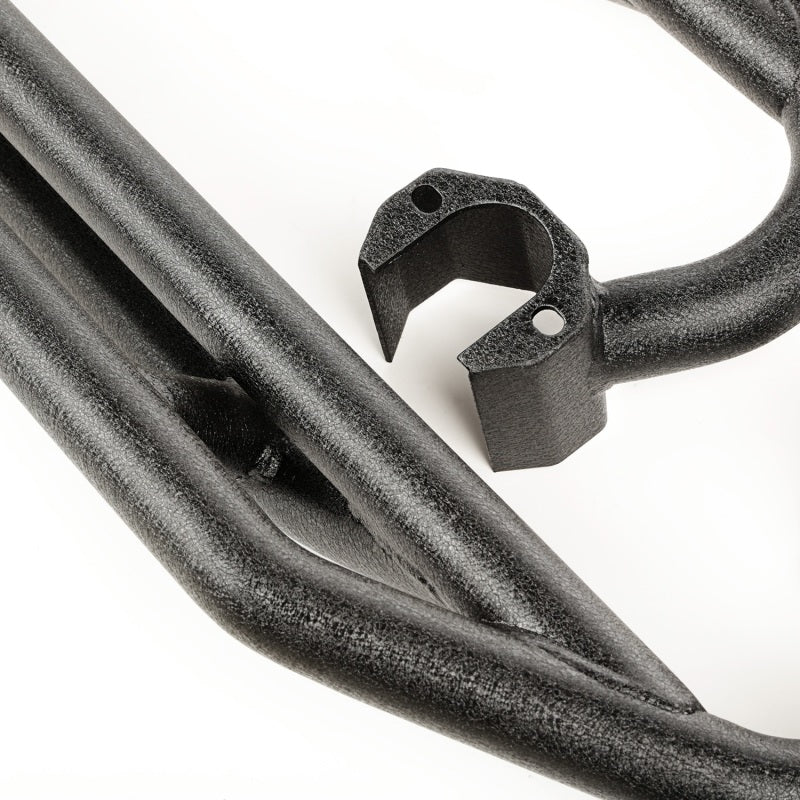 Keep your rocker panels from being beaten to a pulp on the trail with Rugged Ridge's Side Armor. Built from heavy-duty 2 x 0.120 inch black texture powder coated steel tubing, these guards will take the beating that was meant for your body sheet metal. Simple bolt-on design utilizes existing body mount locations for a secure, rattle free installation. The black texture finish resists scratches and gives a slip-resistant surface for door entry. Sold as a pair and includes all necessary installation hardware. Will not fit factory rock rail option. This item carriers a 400lb max weight limit.