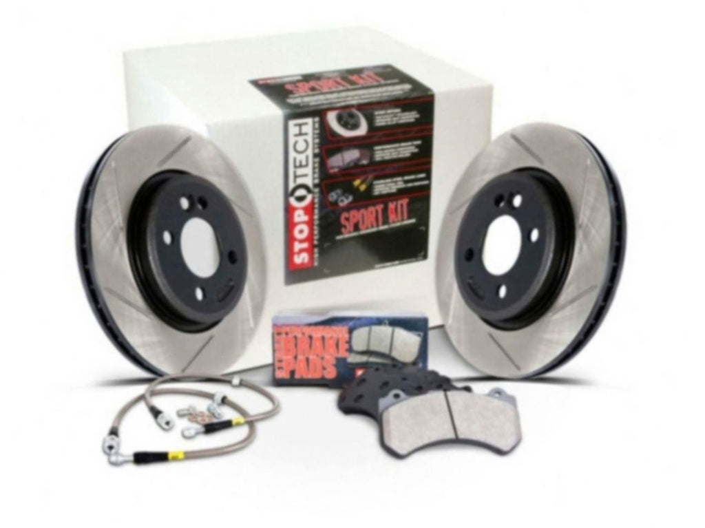 Significant brake performance improvements using the factory calipers and pre-matched; direct-replacement (OEM) sized components. This StopTech Sport Axle Pack includes Slotted StopTech Sport Rotors; StopTech Sport Pads and StopTech Stainless Steel Lines.