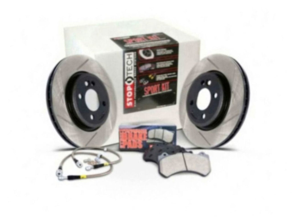 Significant brake performance improvements using the factory calipers and pre-matched; direct-replacement (OEM) sized components. This StopTech Sport Axle Pack includes Slotted StopTech Sport Rotors; StopTech Sport Pads and StopTech Stainless Steel Lines.