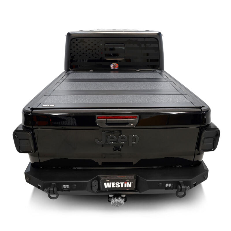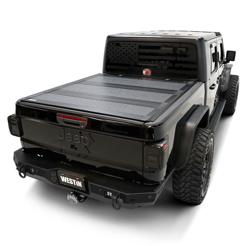 Elevate your truck's performance and style with the Westin Hard Tri-Fold Tonneau Cover. Built for strength, security, and flush mount design, this premium cover is the ultimate solution to protect your truck bed and gear. Crafted from high-quality, heavy-duty aluminum panels, the Westin Hard Tri-Fold Cover offers superior protection against harsh weather conditions, from rain to snow to intense sun exposure. The tri-fold design provides easy access to your truck bed, allowing you to quickly fold the cover back in three simple sections. Whether you need full access or just part of the bed, this cover gives you the flexibility you need without compromising security. Installation is quick and hassle-free, with no drilling required, and the cover securely attaches with a custom-fit clamp system that ensures a tight seal. Constructed from UV-resistant reinforced nylon covers and an aircraft-grade aluminum alloy frame and supports, this cover delivers long-lasting durability and all-weather protection.