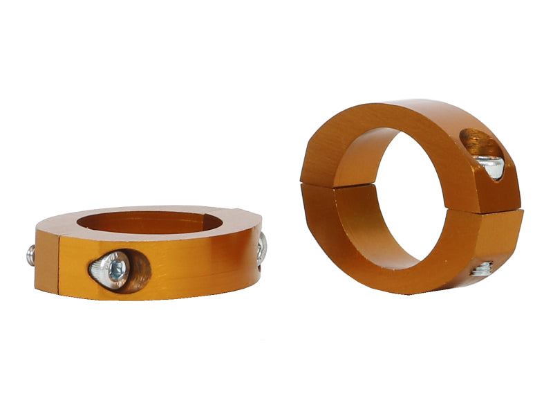 To suit 27mm diameter sway bars - the DIY (Do It Yourself) alloy lateral locking system can be utilized on both factory and more importantly aftermarket sway bars. The locks are easily installed on car with no need to remove the sway bar to install . They are mounted directly next to the sway bar mounting points and prevent shifting or sideways movement of the sway bar under lateral (cornering) loads. This results in improved sway bar effectiveness whilst preventing fouling of the sway bar on near by chassis and steering components.